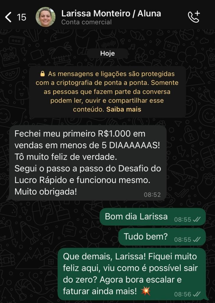 É resultado real: do zero pra R$1.000 no bolso.